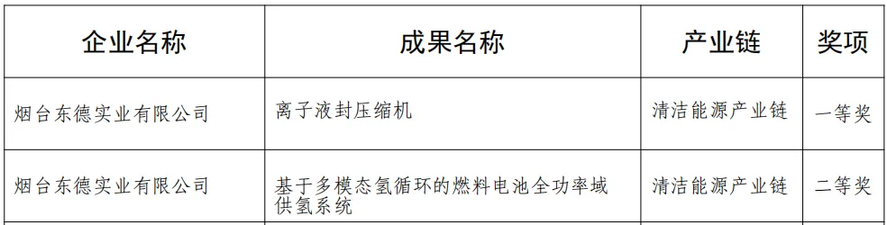 近日,第二届烟台市重点产业链质量攻关大赛获奖名单正式公布,东德凭借两项核心技术成果脱颖而出,一举斩获清洁能源产业链一等奖与二等奖。其中,自主研发的 “离子液封压缩机” 摘得一等奖桂冠,“基于多模态氢循环的燃料电池全功率域供氢系统” 荣获二等奖,彰显了企业在氢能核心技术领域的多元创新实力与行业突出地位。